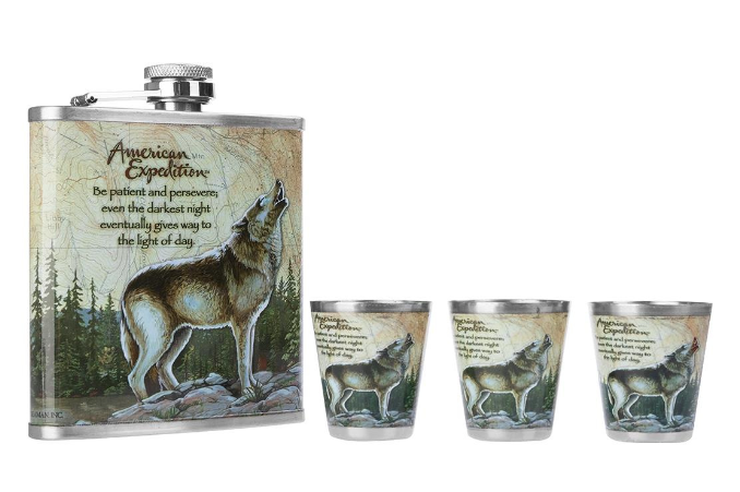 Набор Волк (фляжка 210мл + 3 стопки)