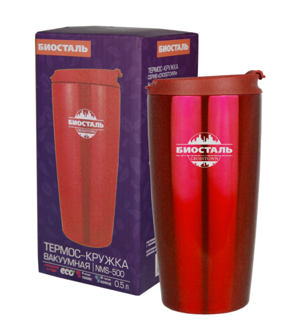 Термос - кружка Biostal-Crosstown 0,50л Алый кардинал
